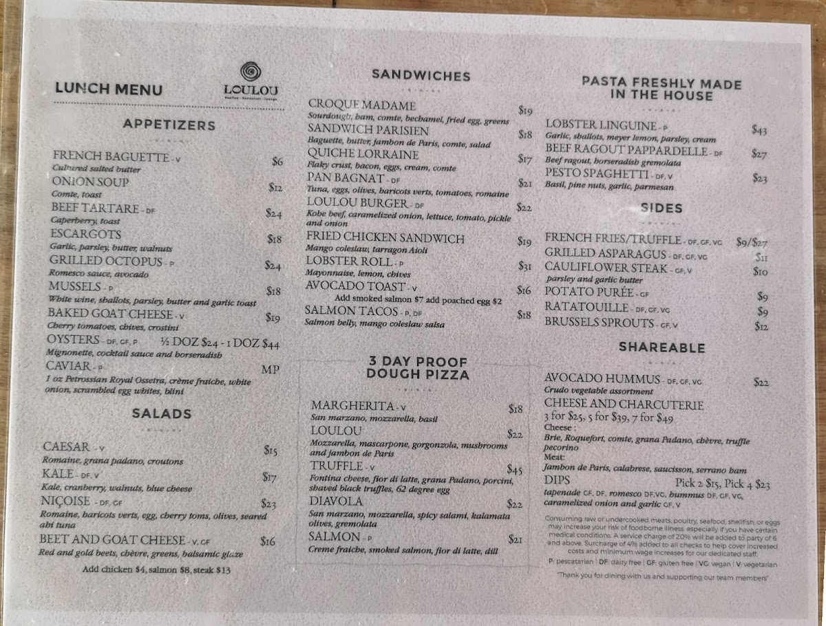 LouLou Santa Monica Menu